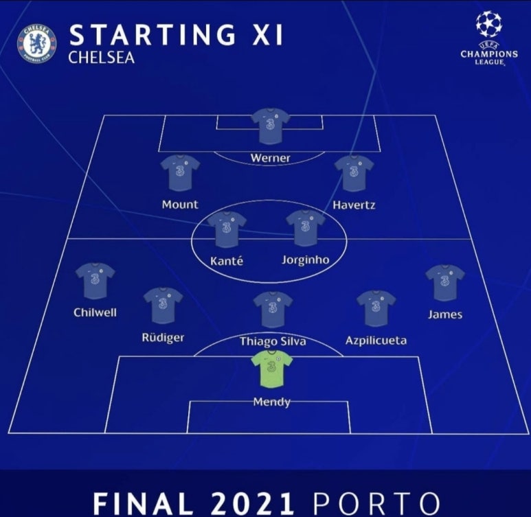 양 팀은 29일 오후현지시각 포르투갈 포르투에 있는 에스타디오 드라강에서 열릴 유럽챔피언스. Mf 칠웰 조르지뉴 캉테 아스필리쿠에타. 첼시가 카이 하베르츠의 결승골을 앞세워 맨체스터 시티 이상 잉글랜드를 꺾고 유럽축구연맹 챔피언스리그 UCL 정상에 올랐다.